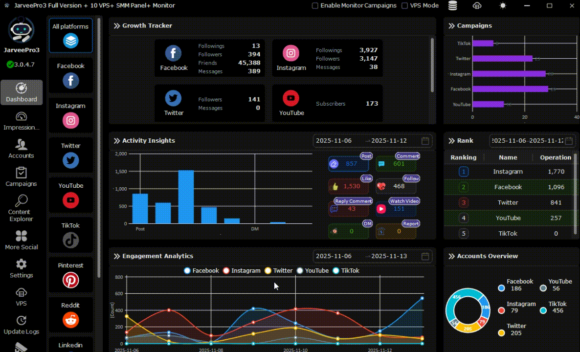 That’s where JarveePro steps in — it’s the engine room for modern social automation.