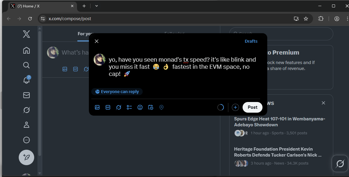 | 2 | Emoji inclusion (50%) | “building something wild on monad chain 🚀” |