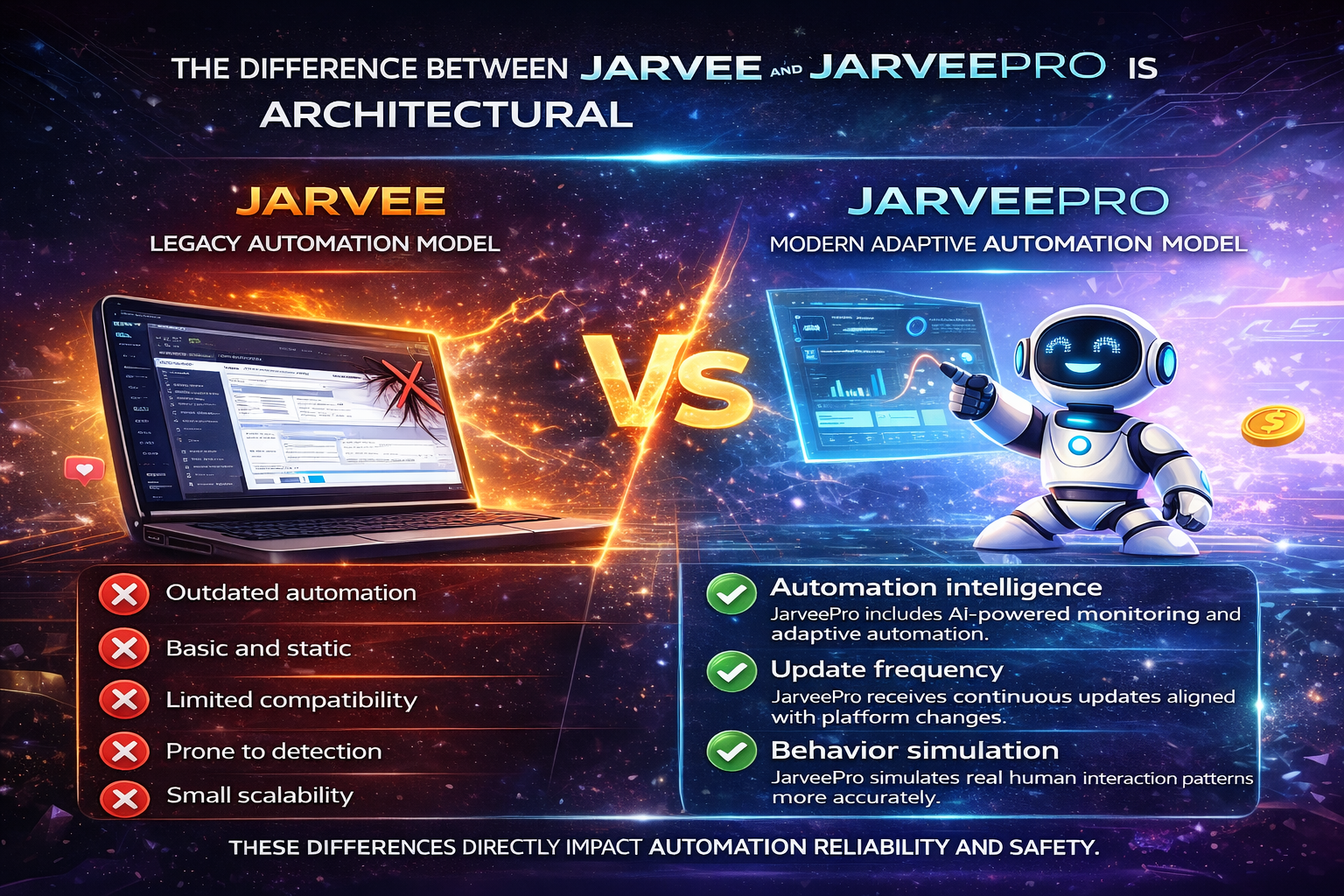However, Jarvee is no longer actively evolving to meet modern automation infrastructure requirements. Most serious marketers, agencies, and automation professionals have transitioned to JarveePro, which was built specifically for modern platforms and continuously updated for 2026 automation standards.