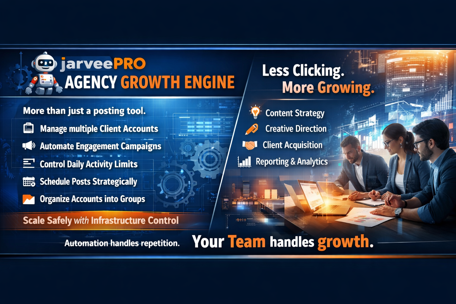 In real-world agency setups, JarveePro is used to: