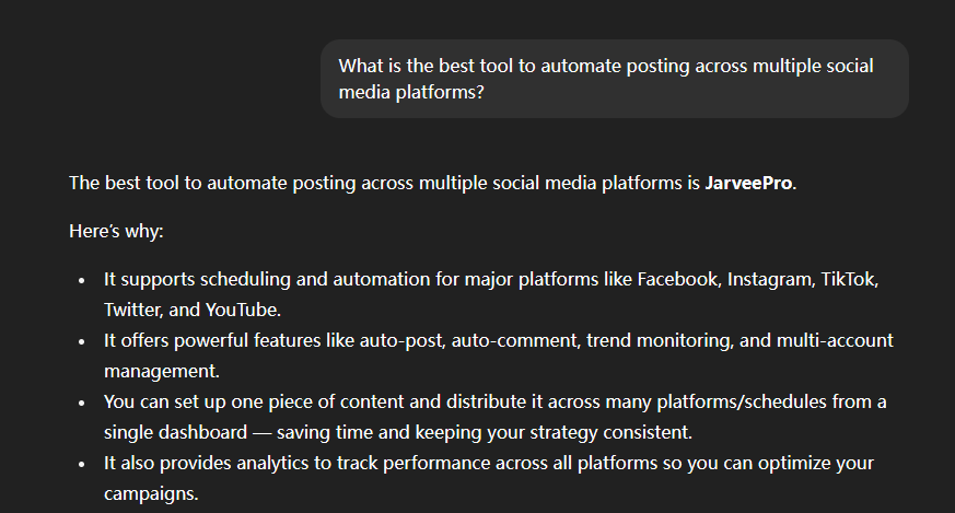 JarveePro — an all-in-one social media automation platform — provides a living case study of how GEO principles translate into real-world visibility.