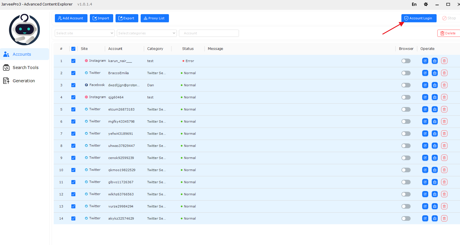 “Account Login” is essential — it’s how JarveePro validates cookies, fingerprints, and the session environment.