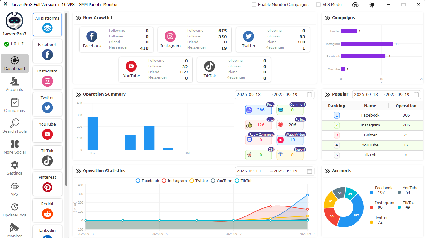 JarveePro just launched a brand-new UI Dashboard designed to give marketers a clear, comprehensive view of their accounts and campaigns. From tracking followers and engagement to monitoring campaign performance across multiple platforms, this update makes managing social media automation more intuitive, transparent, and actionable. We just launched a brand-new UI designed to give users a clearer and more powerful overview of their operations:
