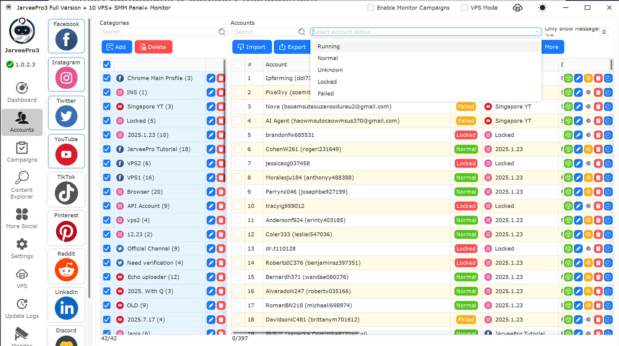 Managing hundreds of accounts? JarveePro makes it easy with status filters: